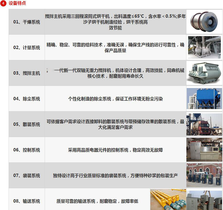 阶梯式干混砂浆搅拌设备建筑高度较低,设备占地相比塔式较大,基础载荷较小,适合对骨料混料不敏感的砂浆产品,适合生产普通砂浆和部分特种砂浆,能耗方面相比塔式要大。