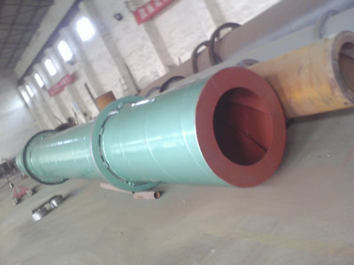 该机主要由回转体、扬料板、传动装置、支撑装置及密封圈等部件组成。干燥机是一个与水平方向略成倾斜的圆筒,物料从较高的一端加入,高温热烟气与物料并流进入筒体,随着筒体的转动,物料由于重力的作用运行到较低一端。在圆筒内壁上装有抄板,把物料抄起又洒下,使物料与气流的接触表面增大,以提高干燥速率并促进物料前行。干燥后的产品从底端下部收集。