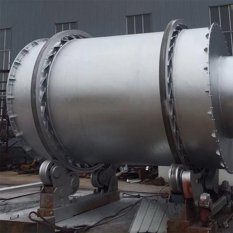 3、随着圆筒的转动物料受重力作用运行到较底的一端。湿物料在筒体内向前移动过程中,直接或间接得到了载热体的给,使湿物料得以干燥,然后在出料端经皮带机或螺旋输送机送出。