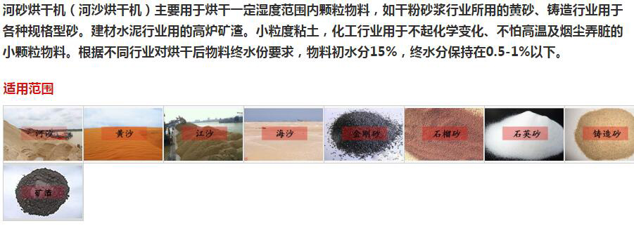制作精良、性能稳定、用煤量少、性价比高,该设备广泛运用于烘干黄沙、河沙、石英砂、矿渣、粘土等原材料。非常适合广大客户投资发展。
