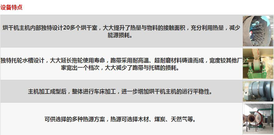 制作精良、性能稳定、用煤量少、性价比高,该设备广泛运用于烘干黄沙、河沙、石英砂、矿渣、粘土等原材料。非常适合广大客户投资发展。